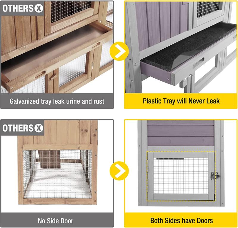 - Chicken house with DEEPER pull out tray make clean easily. Quality plastic trays will never leak or rust provide a comfortable nesting and resting area.