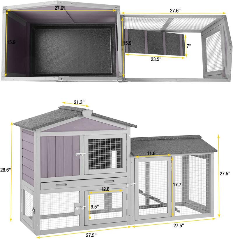 - Easy assembly with pre-drilled holes.Overall size: 57" L x 21" W x 33" H .Perfect shelter for chickens, rabbits, guinea pig, duck and other small animal.